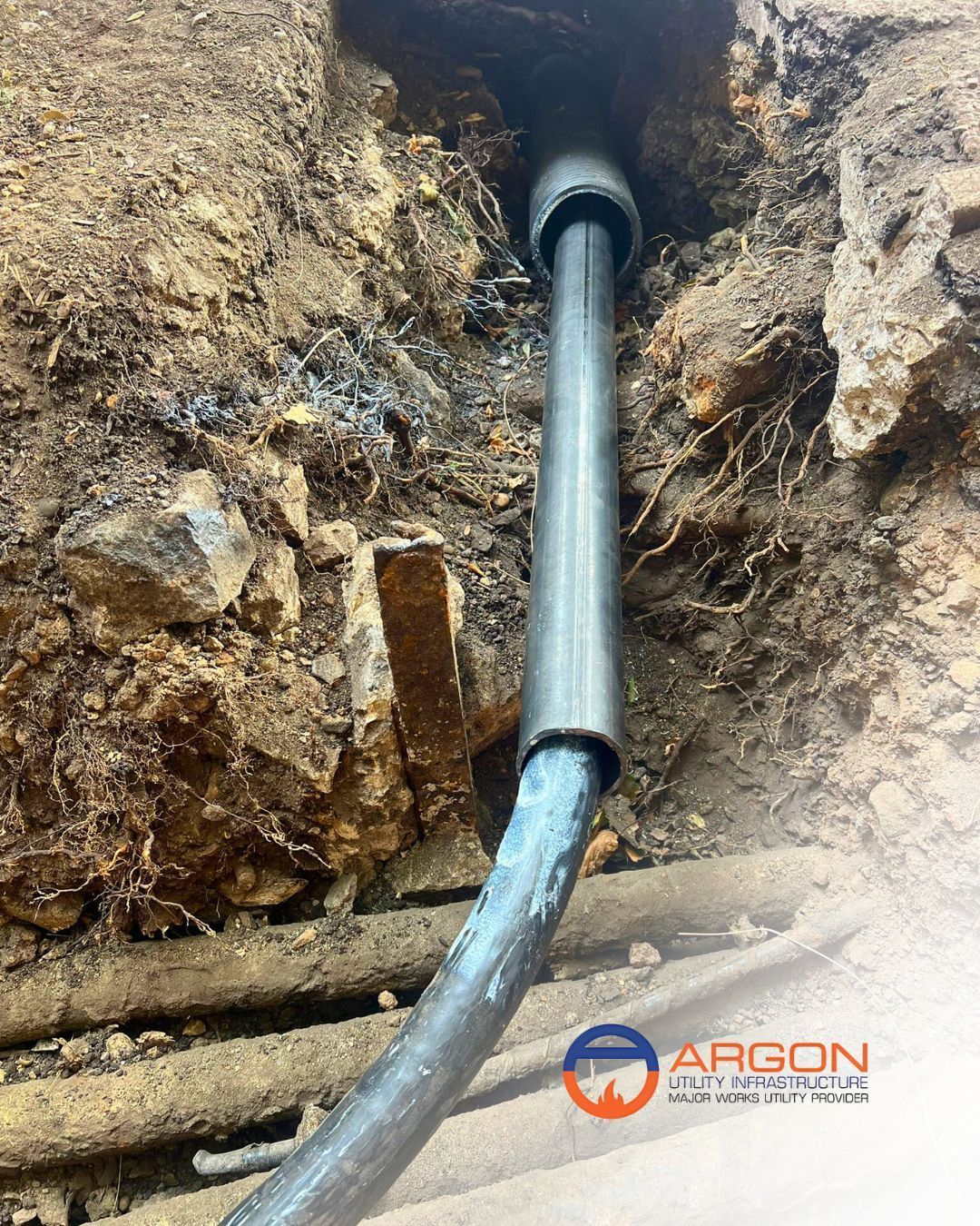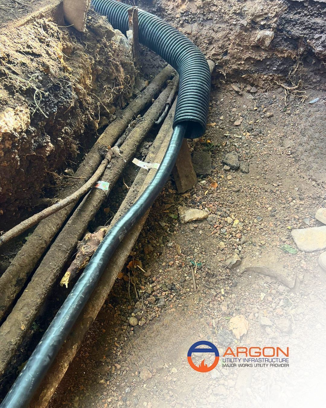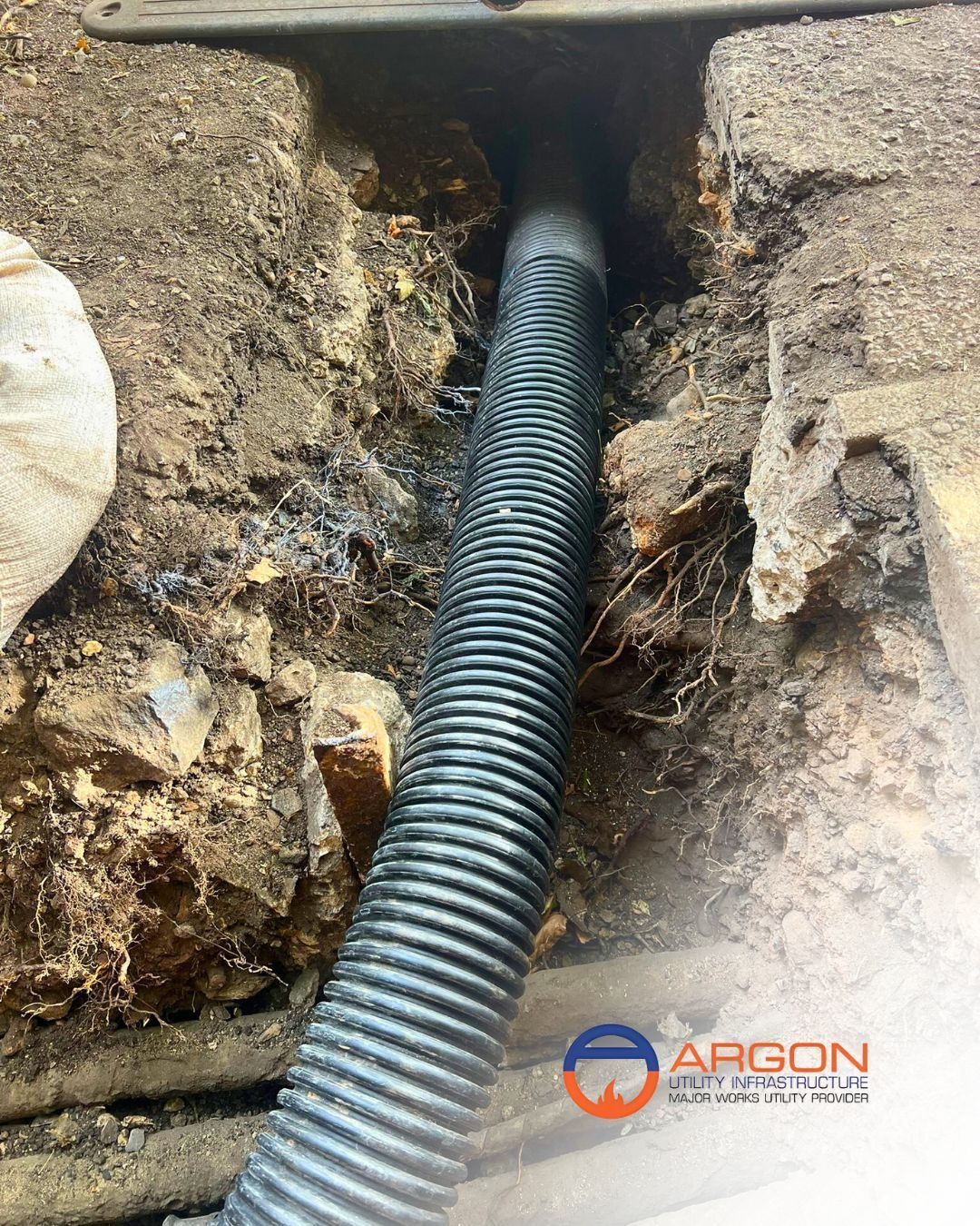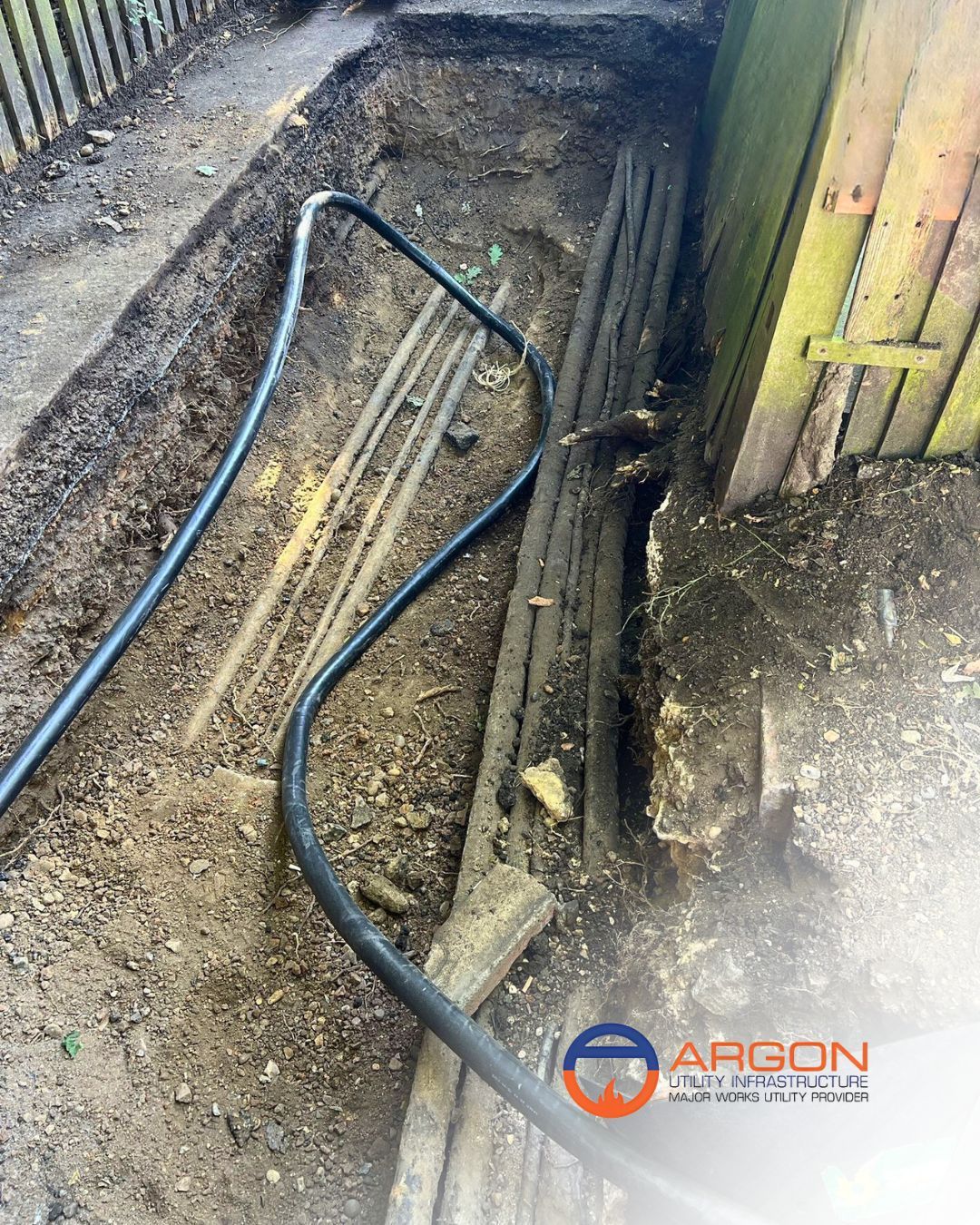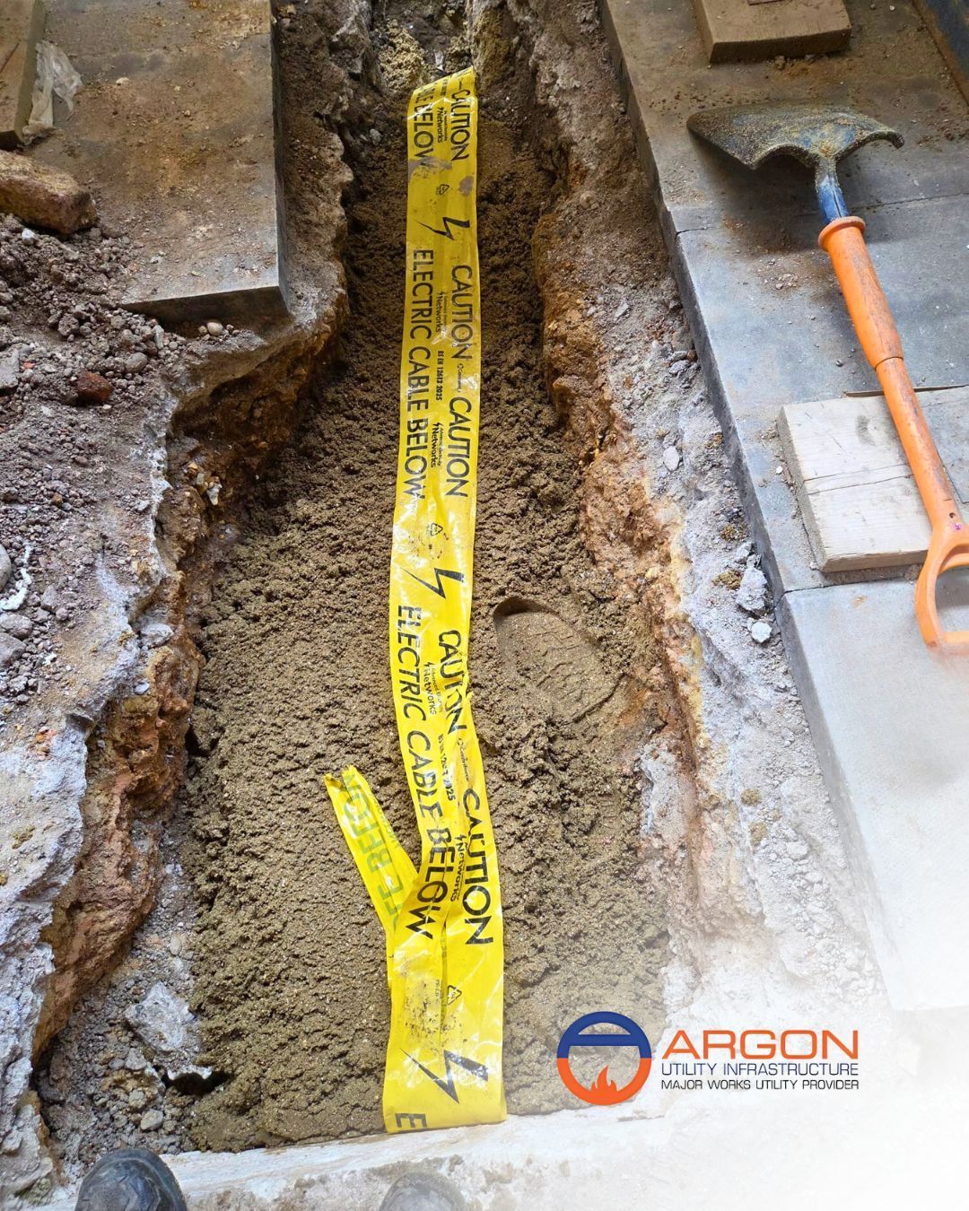 For this project in North London, Argon installed a 300mm 3c waveform cable from the point of connection to a 600amp heavy duty cut-out situated in an external GRP for a temporary building supply (TBS) to give site temporary power whilst there were building works underway, UKPN carried out the energisation. The TBS was then converted to a permanent supply after we installed the full site mains and services, and the TBS was pot ended and removed. UKPD were the adopting independent distribution network owner.