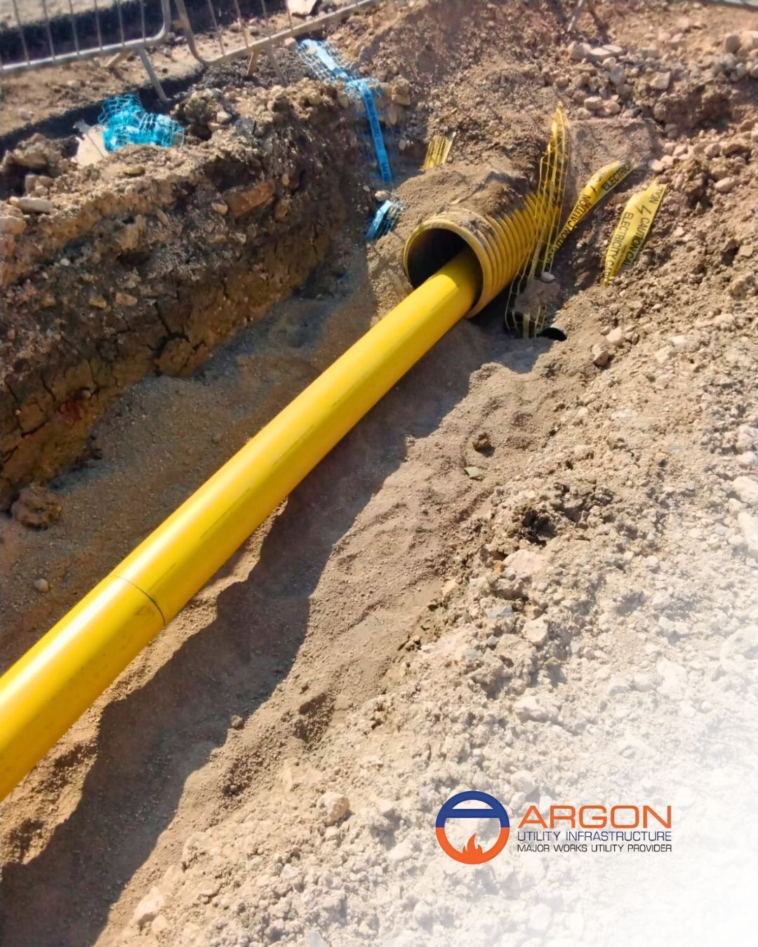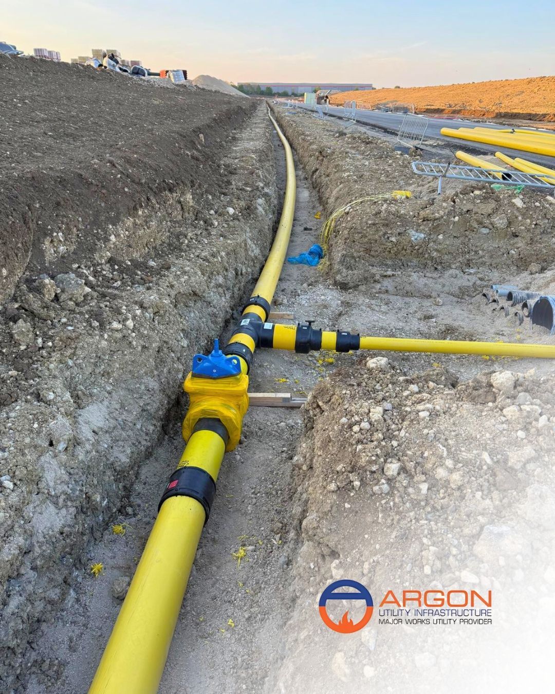Argon was commissioned to install a new Medium Pressure (MP) gas network to supply ten commercial units within a private development. Argon connected to the existing MP main and installed 2,568m of new MP gas main in line with the client’s approved design, completing excavation and reinstatement within 1 metre of the connection point.